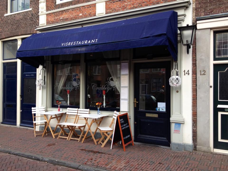 Wat een rotweer! Dat houd geen bankhangen met filmpjes en chocomelk in, maar gewoon keihard werken. Ik werk van woensdag t/m zaterdag, en dinsdag ga ik dan naar school. Mijn werkdagen zijn vaak van 2 uur ’s middags tot sluit, maar bijv. gisteren hadden we een lunch, dus dan werken we van half 12 ’s morgens tot sluit, wat vaak half 11 inhoud. De tijden maken me niet veel uit, omdat ik het superleuk werk vind. Ik werk in een visrestaurant, Brasserie ’t Crabbetje. Het ligt in Delft. Het ligt vlakbij het centrum, dus is het makkelijk te bereiken. We hebben hierdoor in de zomermaanden veel touristen die komen eten, maar we hebben ook veel vaste gasten. We hebben een a la carte kaart, maar onze specialiteit is het Chef’s menu. Je krijgt dan met z’n 2en een groot bord, met kleine hapjes erop. Ieder krijgt er dan wel een klein bordje bij, waar je je eigen gerechtjes van kan eten. Het chef’s menu loopt heel goed, we verkopen dat voor zo’n 70%. Ze krijgen dan 5 items als voorgerecht met een soepje, 3 visfilets als hoofdgerecht en een nagerecht waarbij men kan kiezen tussen zoet of kaas.